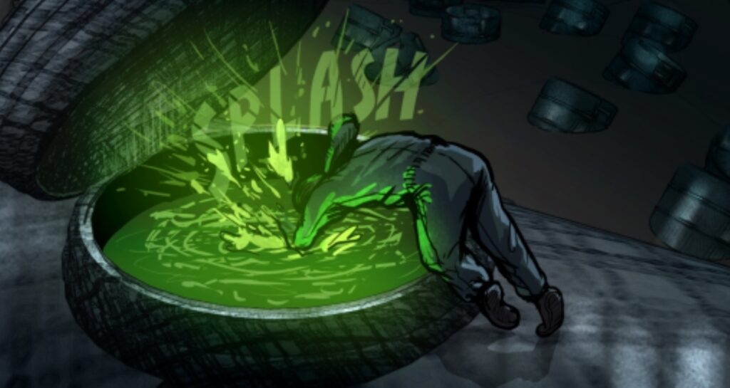 TM: For the third story. I wanted to write something even darker and grittier. It started off as a vampire story. My idea was, what if some bats got into the tanks? And they start creating all these vampires. So I started there. But I’m not a vampire expert. It gets too tricky in the lore of vampires. And what does that have to do with Hanford? And also I had just come across a news article about a big fentanyl bust last year or the year before. And it just got me thinking of telling a more modern-day story. Obviously it’s not particular to Richland. It could be any town that has a drug issue, especially with the fentanyl crisis. But what if I made these bats bite people and they get radiated, and what they want is more and more and more drugs. But instead, that drug is toxic waste.