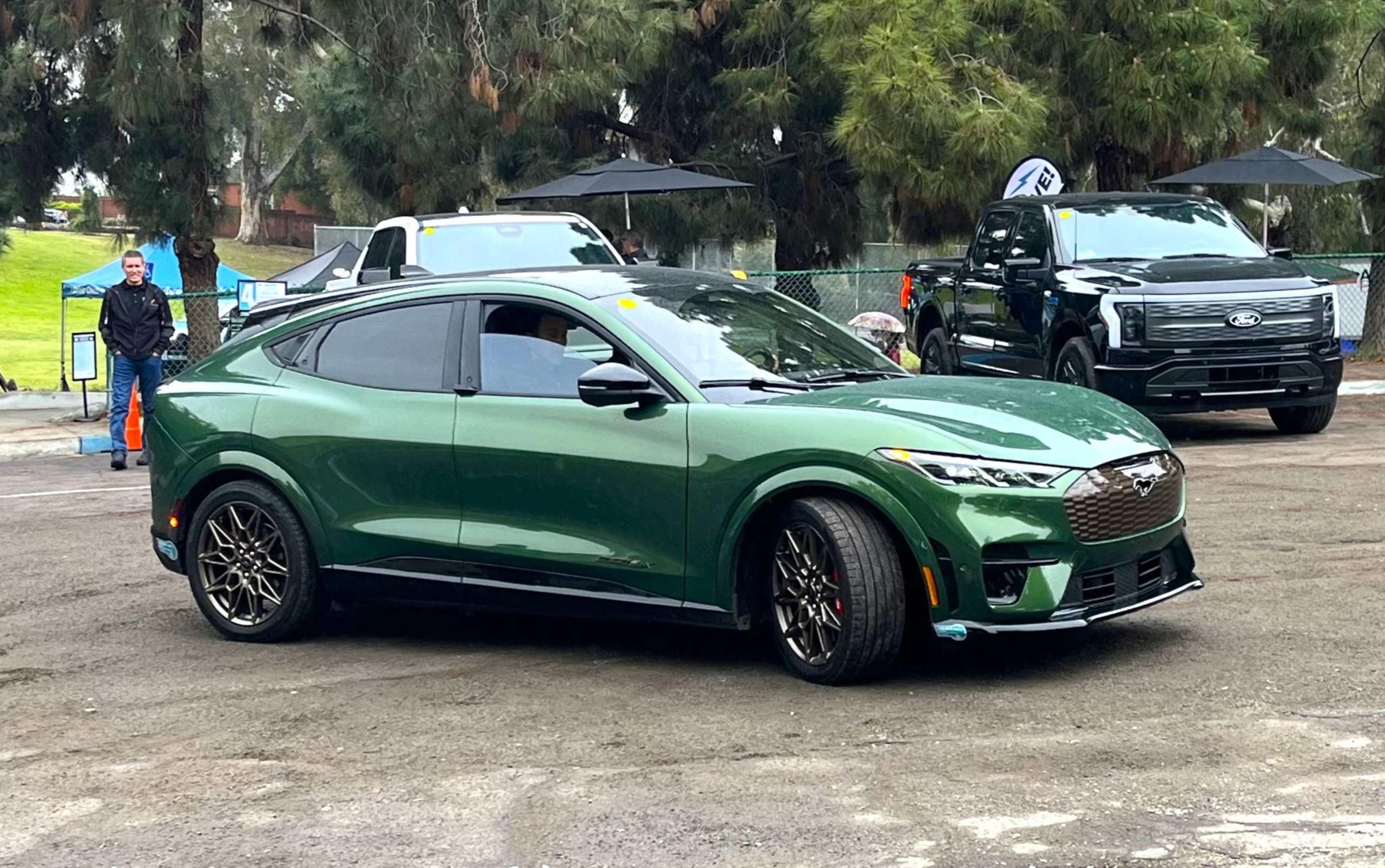 This was true. EV owners receive a small stipend for letting strangers drive their cars around a brief route in the neighborhood, but their passion for EVs seemed a larger part of why they were there. In a Chevy Equinox, my host told me his son nagged him into getting an EV, and now he canโt believe how much money heโs saving on gas. And in a Ford Mustang Mach-E, the owner put the car in โunbridleโ mode and invited me to punch the accelerator โ Iโve never felt a car jump forward so quickly. Heโs owned seven different EVs and was quite honest about the pros and cons, but he loves the sporty Mach-E GT with an obvious fervor. In case you think EVs are limited to small cars, there were also larger vehicles to drive: a Chevy Blazer, a Ford F-150 Lightning, a Rivian R1T, a Chevy Silverado, and a Ford E-Transit van.