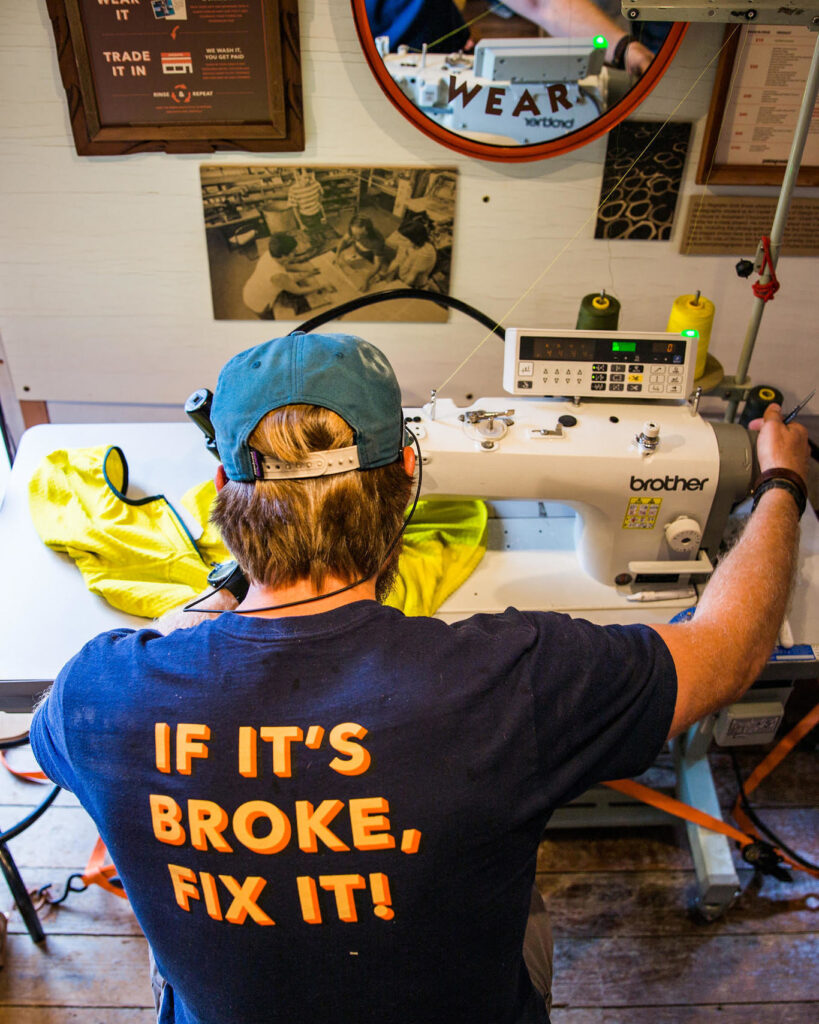 At Patagonia, repairs play a huge role in everything from design to end-of-life recycling. Every item that Patagonia makes is analyzed each season for repairability. The data is then used to identify design or production issues.
