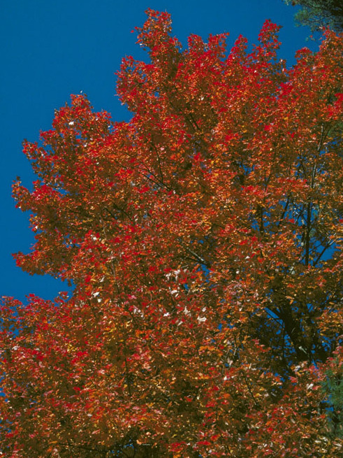 Finding a native replacement for Norway maple is simple: plant red maple (Acer rubrum) instead! This tree is easy to grow in a variety of conditions and displays dazzling fall color. Its early bloom welcomes a myriad of native bees in search of nectar, as well as birds who frequently nest and search for food nearby. Various native moths and butterflies use this tree as a host plant, including the iconic rosy maple moth (Dryocampa rubicunda).