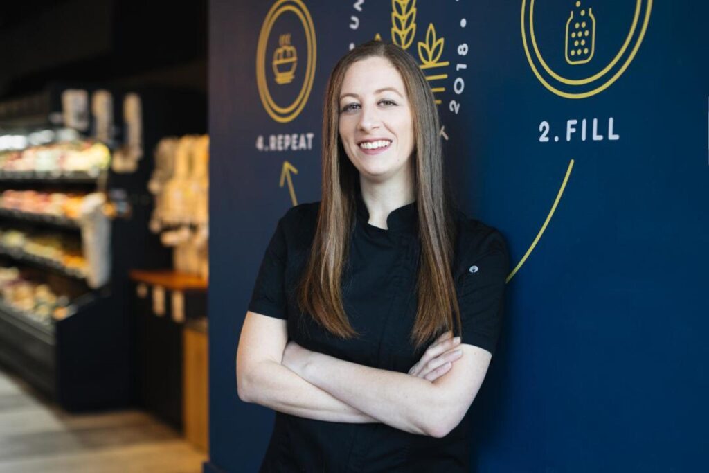 “It’s designed to be a full-featured grocery store,” says Michelle Genttner of the store she co-founded, Unboxed Market. “A lot of refilleries are focused on home care or body care, and if you’re trying to create an eco-aware shopping experience, this can mean having to go to six or seven stores to get everything,” she says. At her 1,500-square-foot, Dundas St. W. store, they’ve included many traditional grocery store features, but package-free whenever possible.