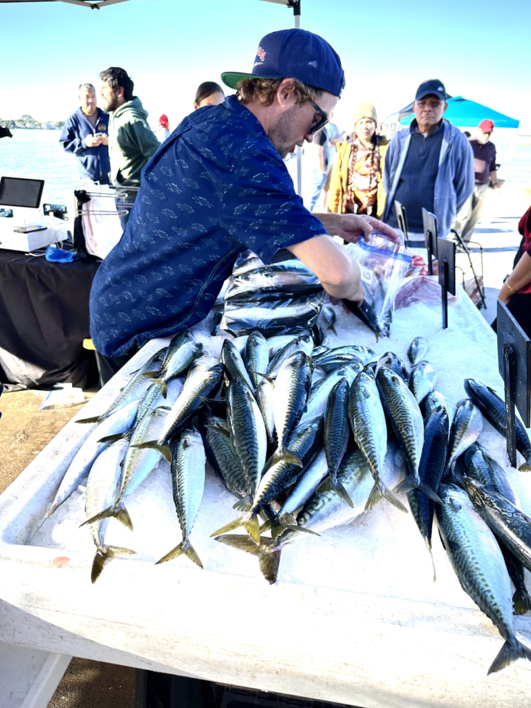 It’s before 8 am on Saturday morning, and there’s already a sea of people flooding Seaport Village’s Tuna Harbor Dockside Market. This once-a-week marketplace is where local fishermen sell their catch directly to consumers and restaurants alike. For those interested in sourcing local and full transparency when it comes to seafood, it doesn’t get any better than this. Regulars line up well before the official start time with coolers in tow like superfans waiting for their favorite band to play.