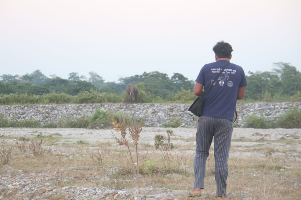 RRT members on both sides of the Mechi River work in collaboration, Karki says. “We coordinate through phone calls and share information with each other on the animal movement.” Sometimes, they’re dealing with a single elephant, he says, other times, it’s a herd of fifty.
