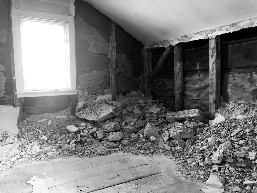 Someone seeking insulation had poured three inches of concrete between the cracked, crumbling lath-and-plaster inside walls and the exterior sheathing. The electrical and plumbing systems required a complete overhaul to meet provincial building-code standards. The roof needed replacing. But structurally, it was mostly in decent condition. Heidi picked it up for $180,000.